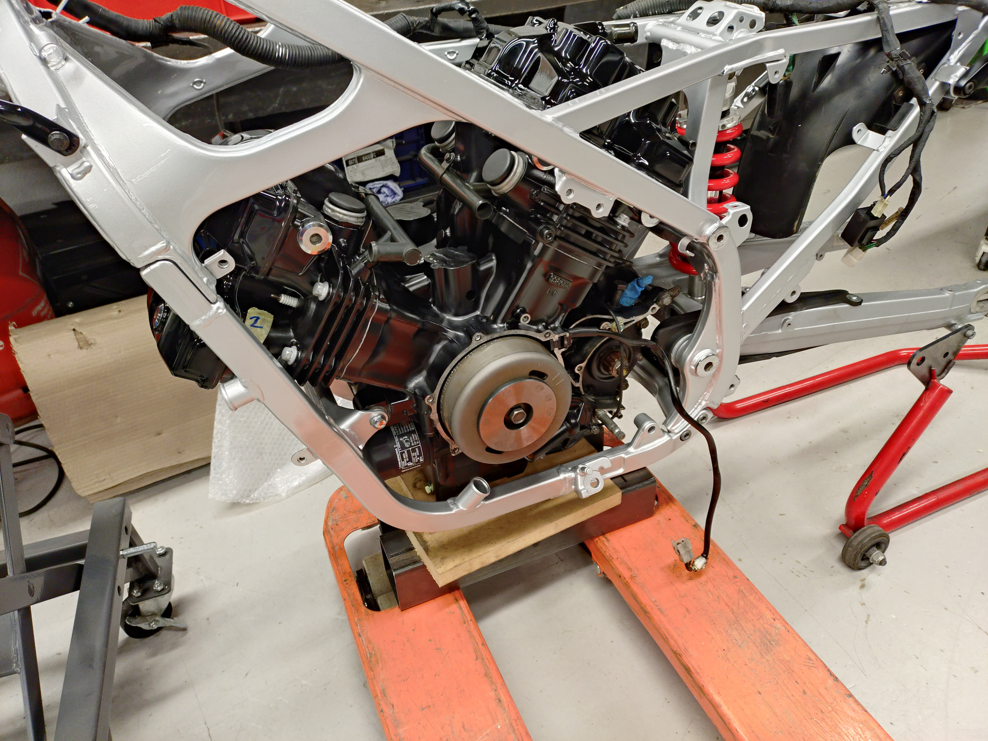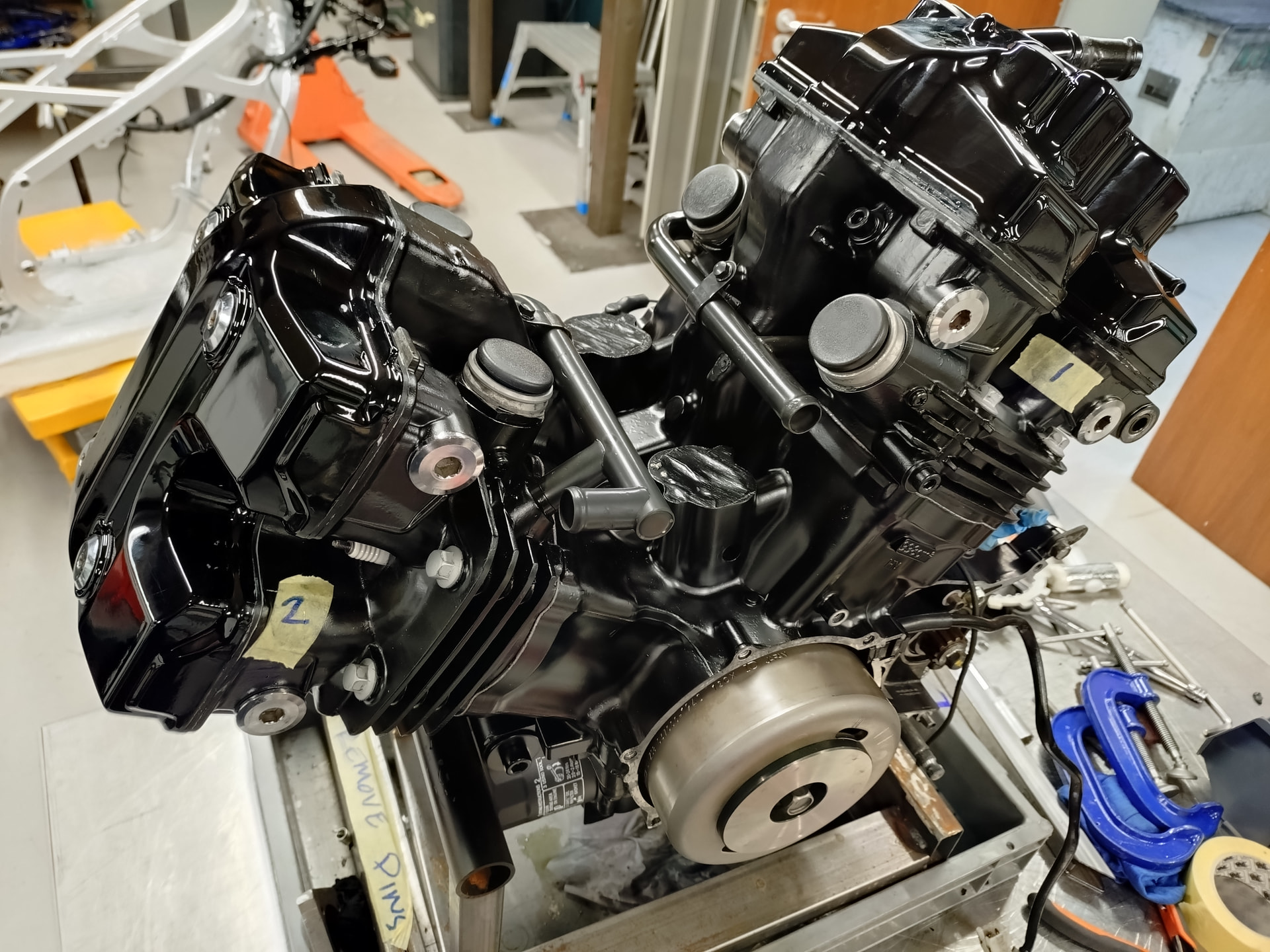 Rebuilt & refitted the heads, installed the new cams & refitted the motor into the frame