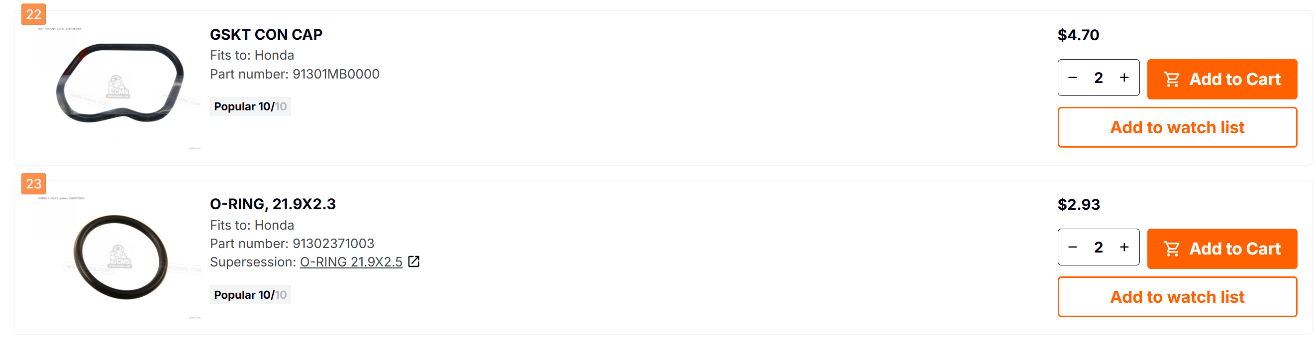 Hi Don is that for part no. 91301-MBO-000 as I don’t see upper and lower mentioned for these coolant housings and they both have the same part number (No. 20 on the diagram- left and right)? cheers