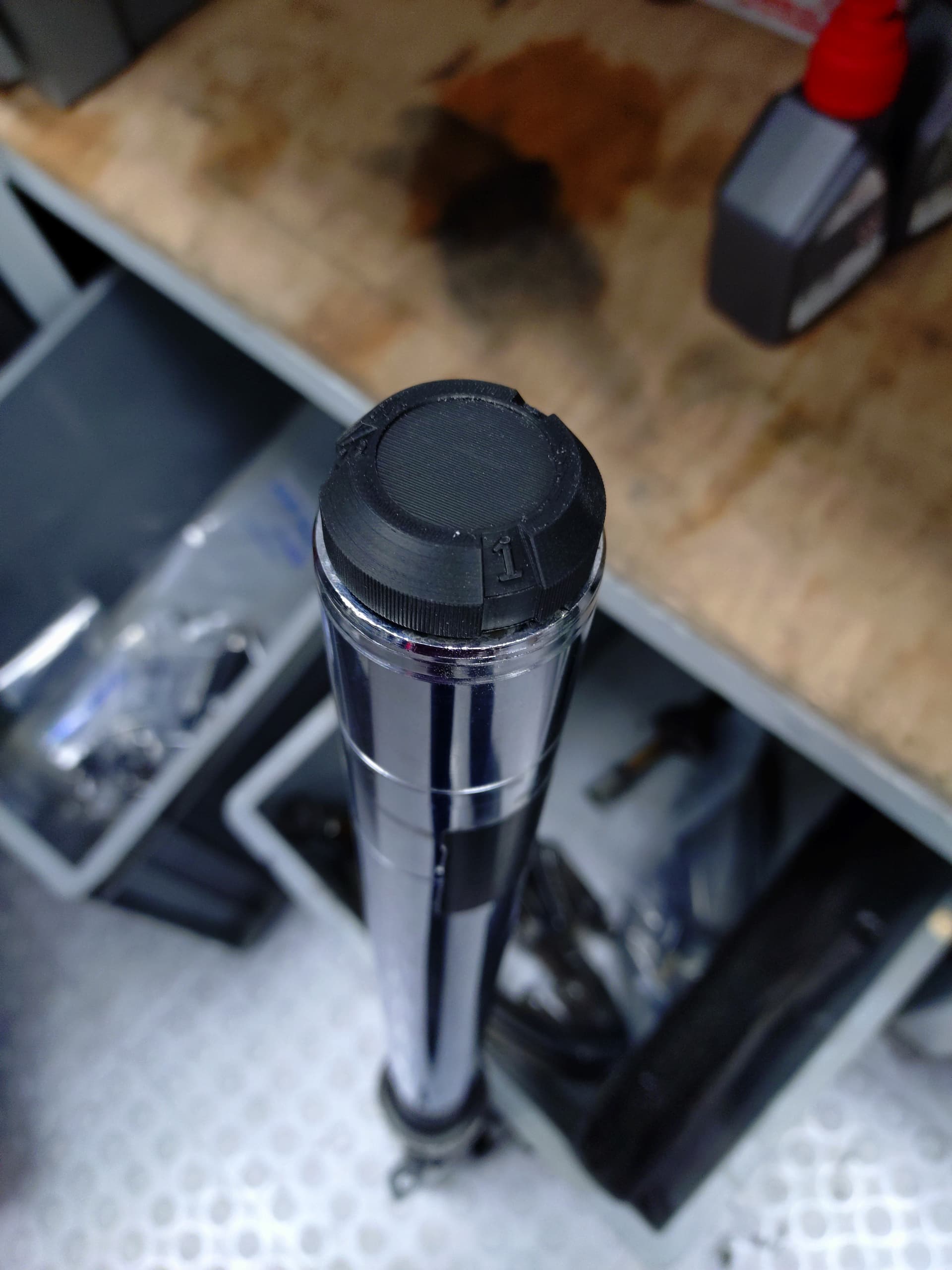 I couldn’t find a fork leg adjuster plastic cap anywhere so I’ve modelled it in Solidworks & had one 3d printed, came out okay i think & fits & works the adjuster as it should, it’s a pretty good fit but I’ll cut a small piece of double sided tape & stick it on as well just to be sure.