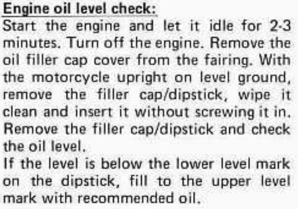 With the oil, after draining the oil and replacing the oil filter, just fill till the oil is at the top of the full mark on the dipstick, do not screw the dipstick in, start the engine for a minute or two….then top off as necessary, oil filter will take ~250ml or so, oil level must be taken with the bike upright, not on the sidestand. We also need to remember, the first of the “R’s”…the 1984 RE’s never had a twin element oil pump or an oil cooler so they will take slightly less oil than the other two.