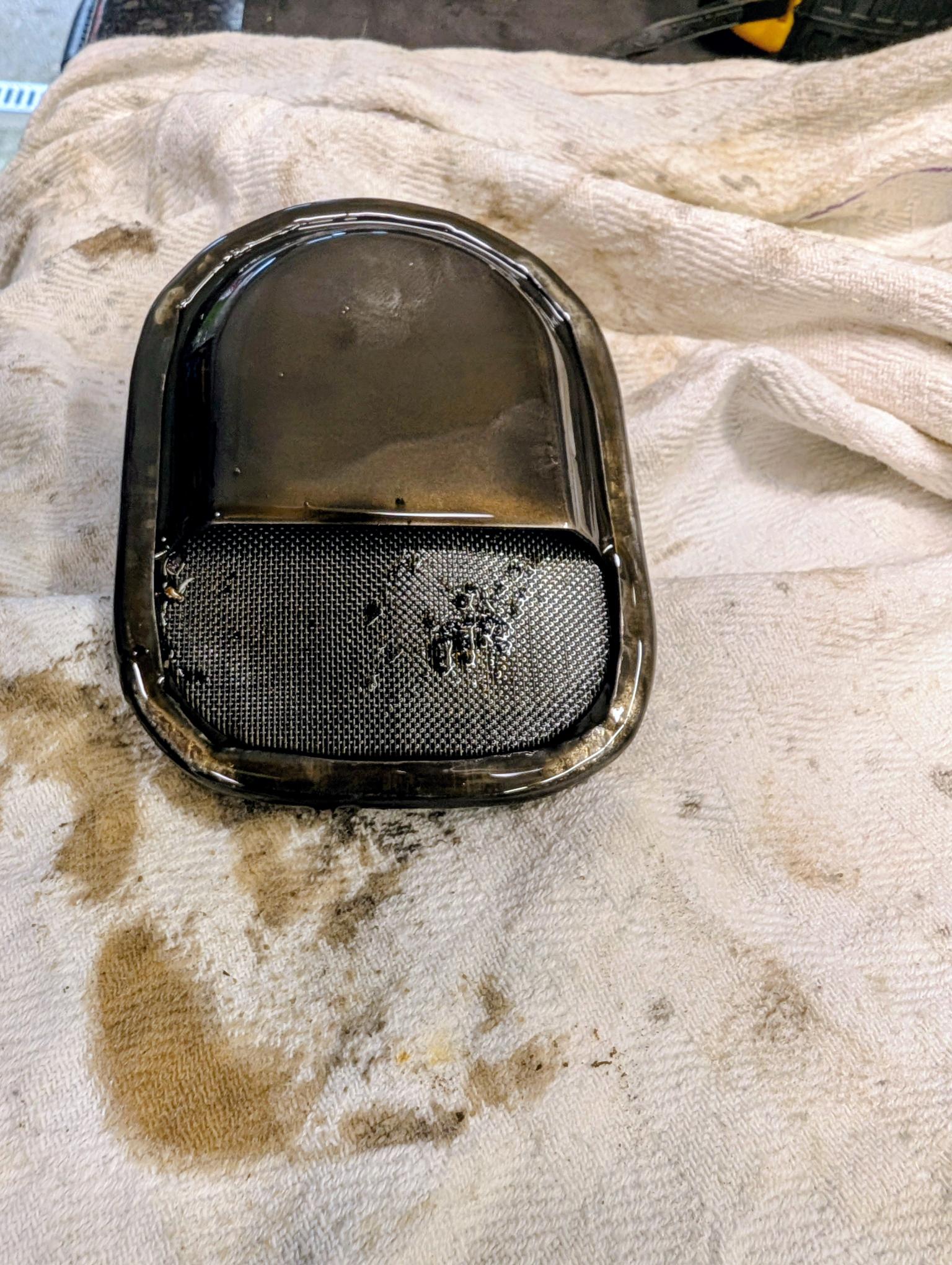 Hi tuffy, the oil strainer just pulls off, always interesting to see what they have picked up.