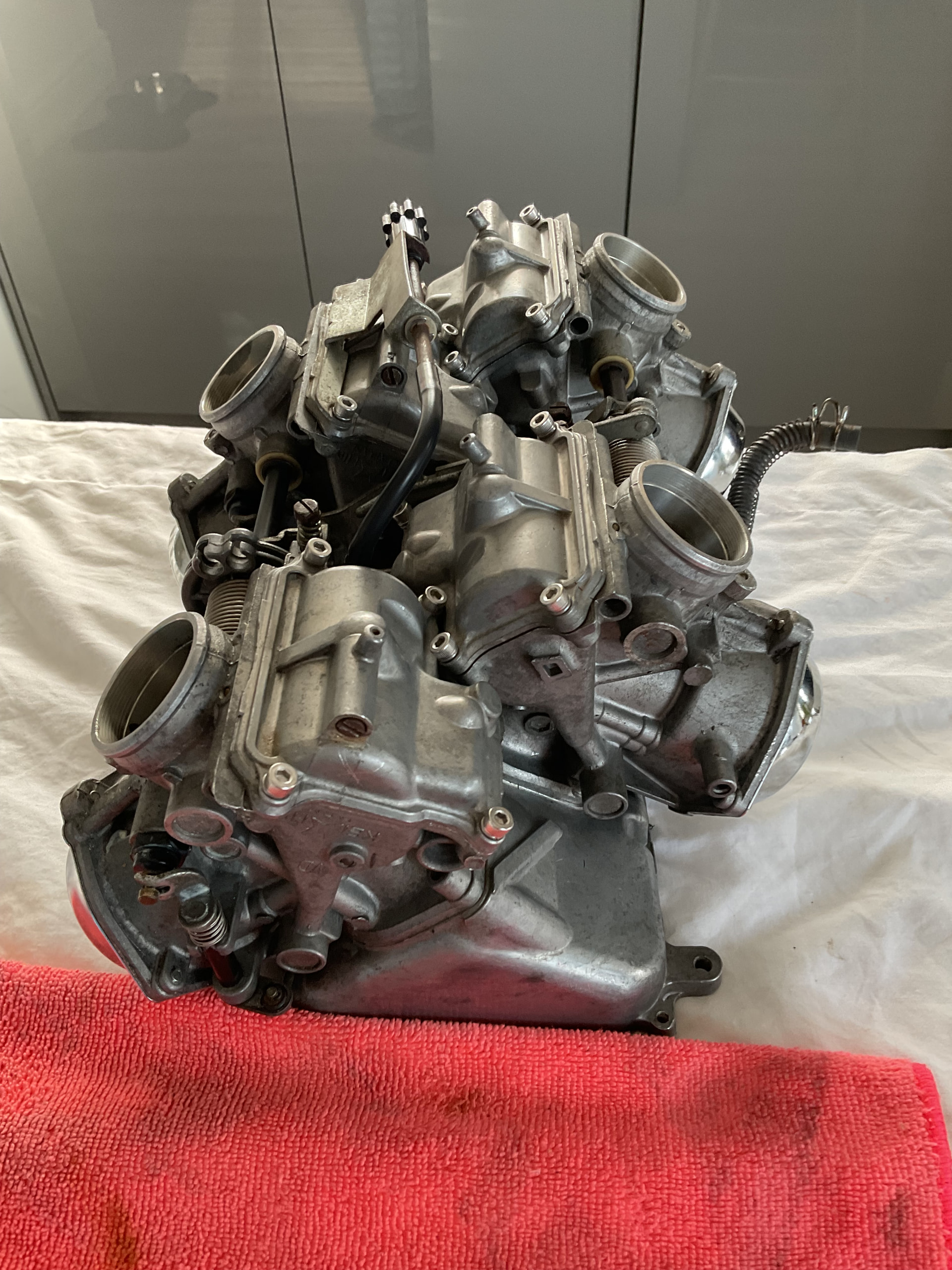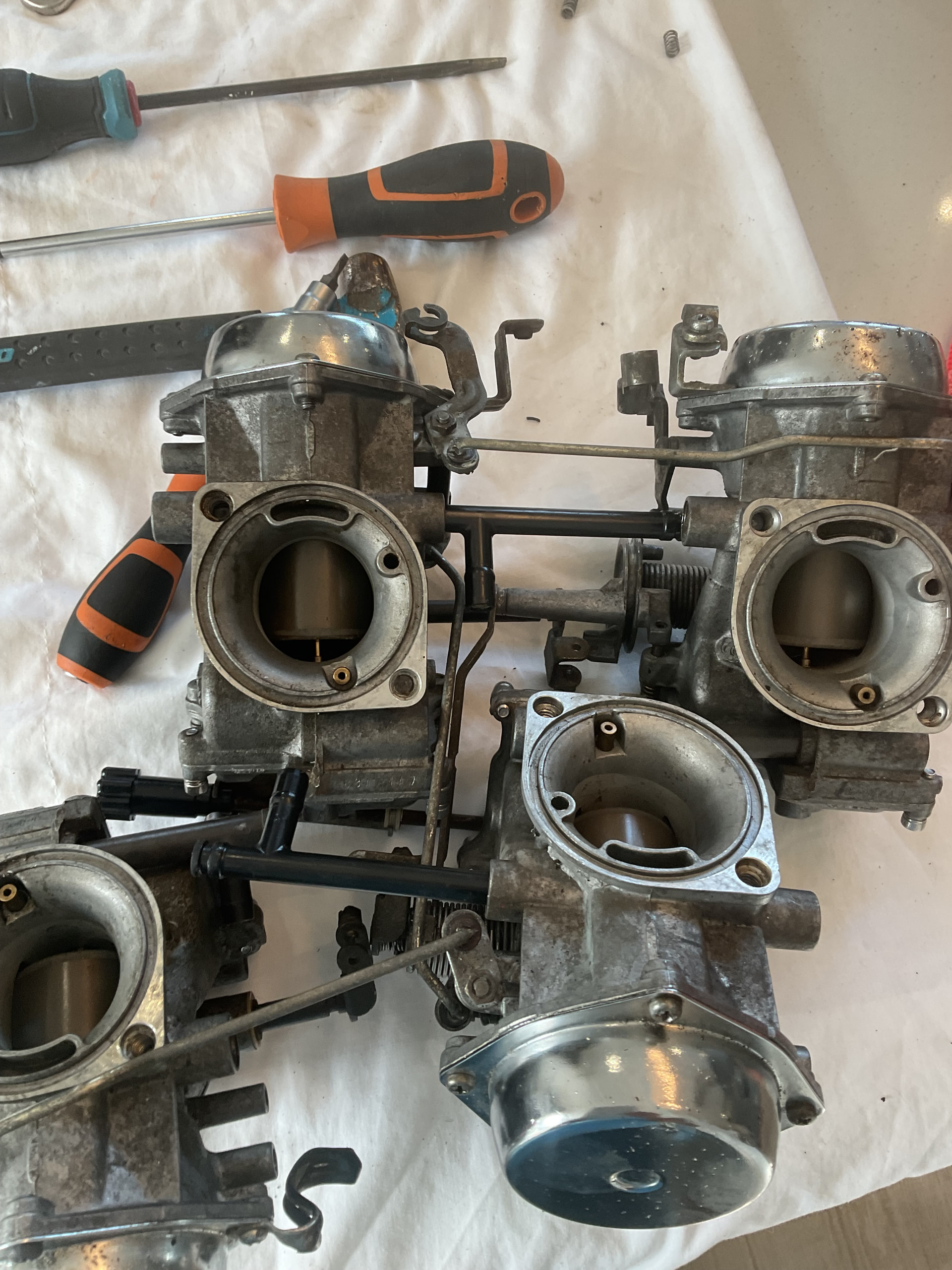 Hello I removed the carbs on the vf1000r to replace the bowl gaskets and to check to float heights.. so I put it back on the bike and turned the fuel on then I noticed fuel dripping, so off comes the carbs again checked the carb that was leaking, and tested it off the bike, still leaking… I think it’s coming from a little tube that connects the carbs but not sure.. now, this tube turns, is it suppose to? Are there rubber o-rings in there… swapped gaskets around, made no difference.. at a lose
