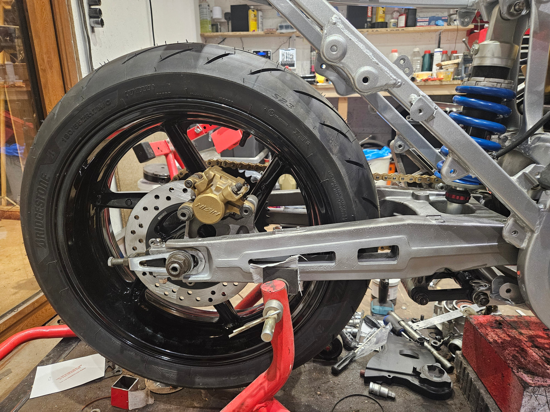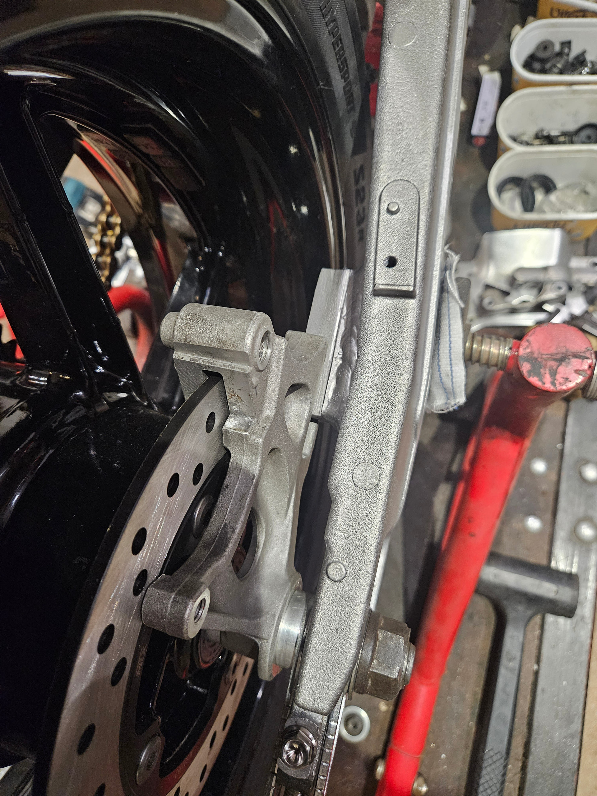 p.s. The first 2 photos of the lug and freshly welded swingarm is from when I did this conversion on my other R for a f3 rear wheel about 7 years ago, the lug for the blade wheel dosent protrude as far.. I was sceptical about welding the swing arm at first as quite a few people were saying it couldn’t be done as its a aluminum alloy..