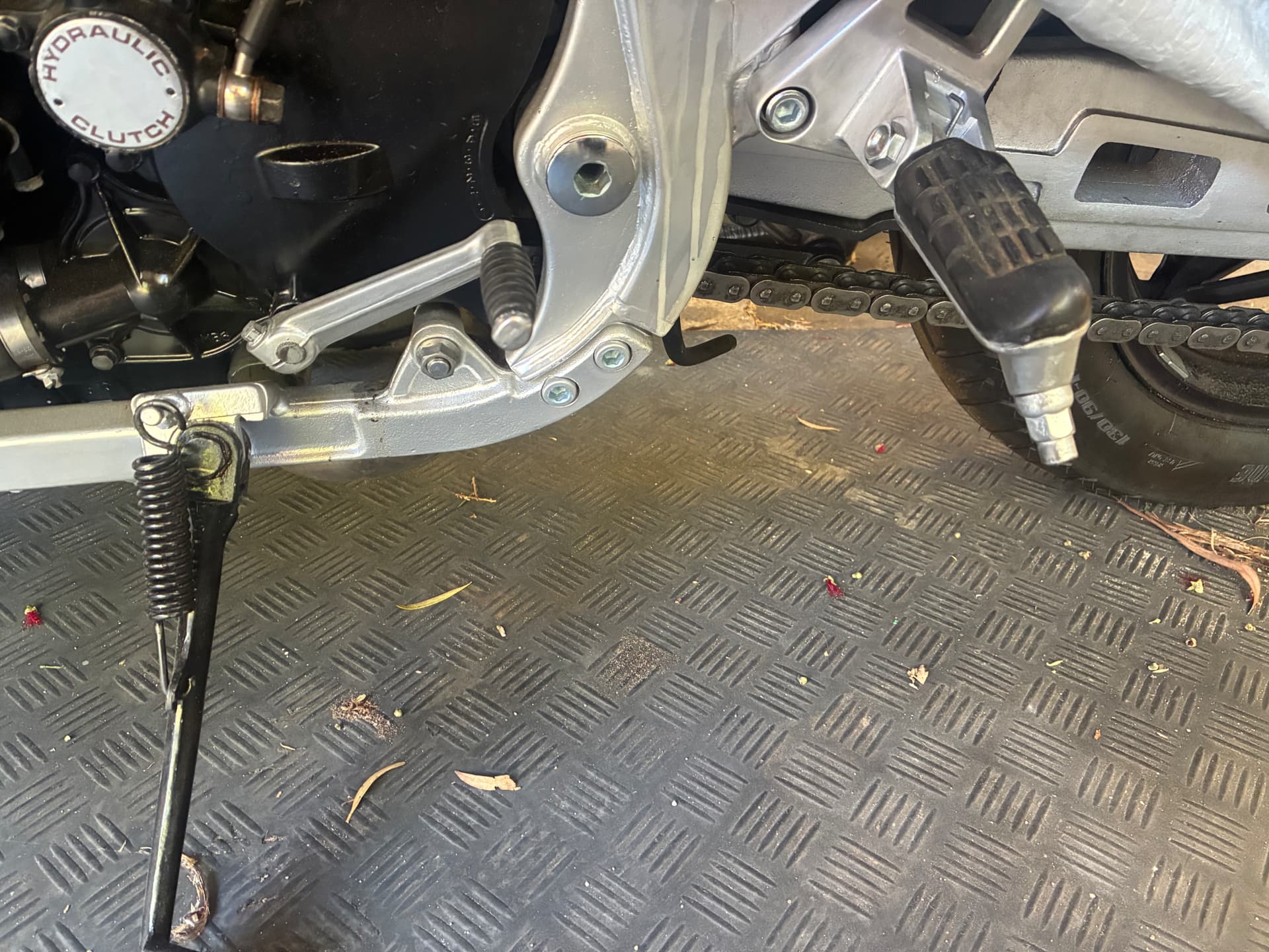 When I fitted the R motor to an FE I did away with the gear change linkage on the left footrest and used a lever from the early(fh/j) cbr1000.What are you using,or are you going race style,one up and four down?