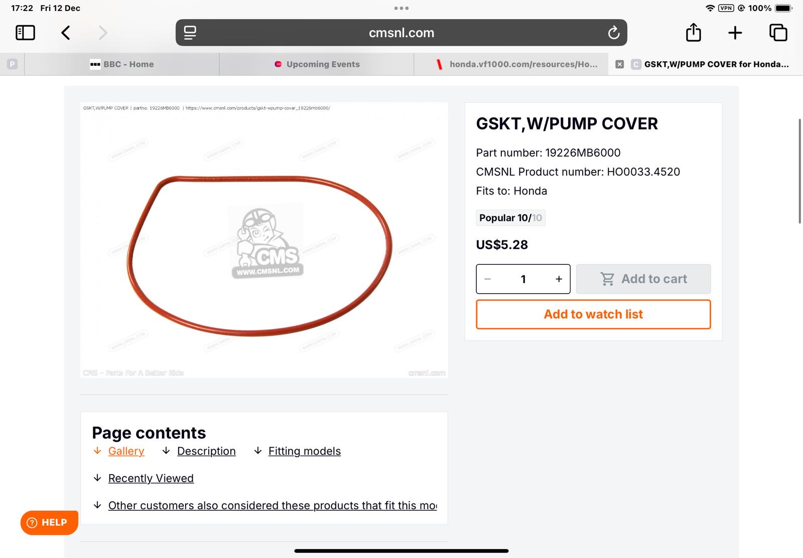 Need a new water pump seal o-ring but it seems to be unobtainable when I check all the usual suppliers.